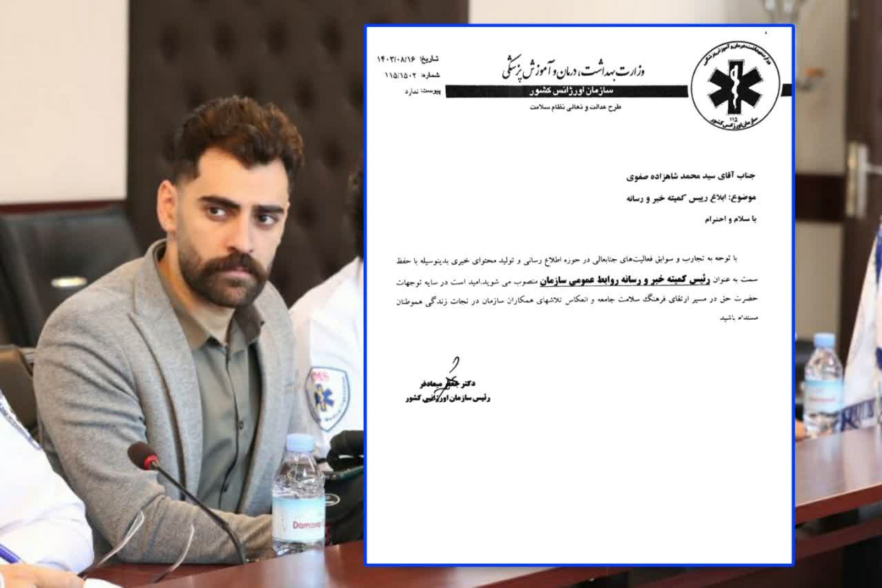 دکتر جعفر میعادفر، رئیس سازمان اورژانس کشور، با صدور حکمی، سید محمد شاهزاده صفوی را به سمت رئیس کمیته خبر و رسانه سازمان اورژانس کشور منصوب کرد.
